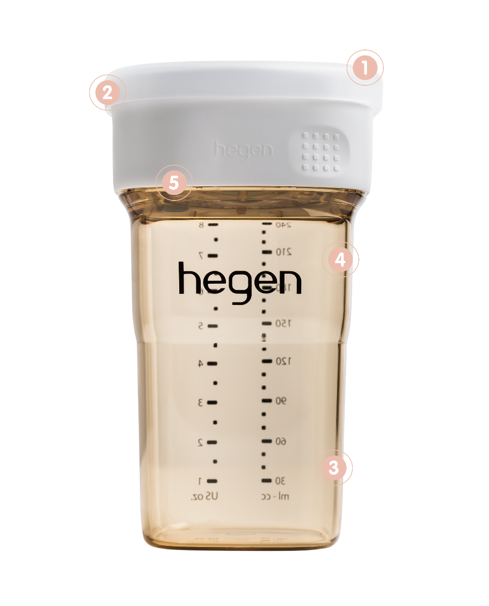 Ergonomically shaped for small hands to hold, the Hegen Sqround™ bottle also stacks neatly, optimising your storage space.